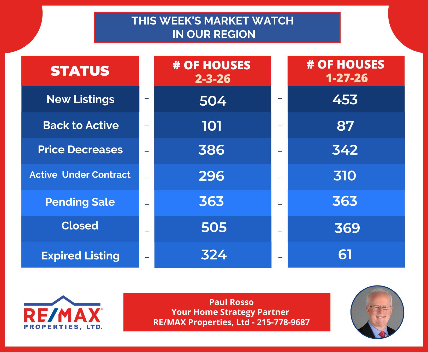 Paul Rosso RE/MAX Properties, Ltd Bucks County & Philadelphia Region Call or Text: 215-778-9687 |